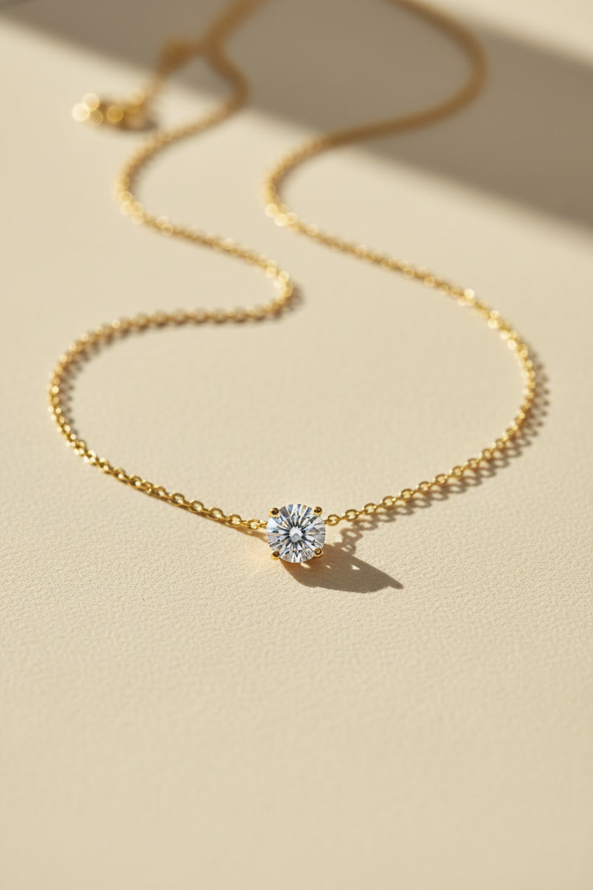 De Étoile Zircon Ketting vangt het licht op een manier die zacht en verfijnd is — precies zoals stille luxe bedoeld is.