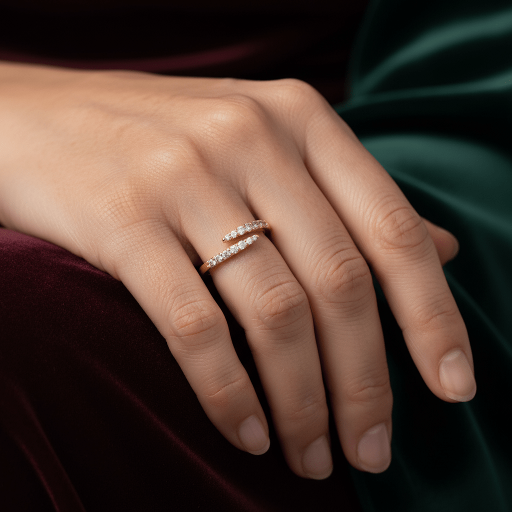 De Éclat Wrap Ring is een ode aan elegantie en modern vakmanschap. Geïnspireerd door Koreaanse minimalistische luxe, wikkelt deze ring zich moeiteloos rond de vinger met een verfijnde, open claw wrap vorm — een subtiele verwijzing naar zachte kracht en tijdloze schoonheid.