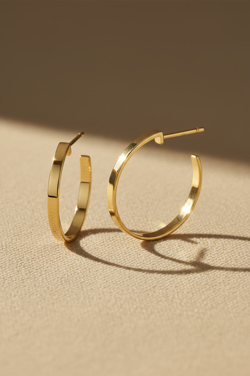 Deze verfijnde oorringen vormen de perfecte balans tussen minimalistisch design en moderne luxe. Het medium formaat maakt ze veelzijdig: stijlvol genoeg voor een avond uit, maar subtiel genoeg voor dagelijks dragen.